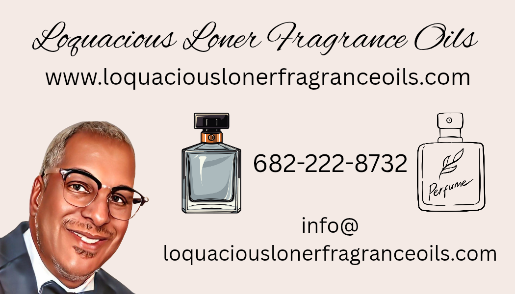 Welcome to Loquacious Loner Fragrance Oils, where confidence meets sophistication. Based in Fort Worth, Texas, we believe everyone deserves to present themselves with swag, class, and elegance without breaking the bank. Discover our diverse collection of high-quality fragrance oils for men, women, and unisex wear, crafted to help you feel self-assured and unforgettable. We're glad you're here to be a part of our story.